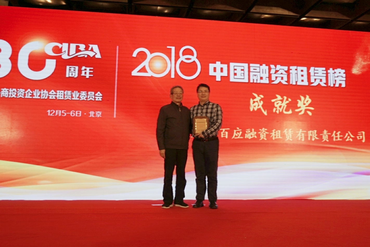(百应租赁荣膺2018年中国融资租赁“成就奖”)